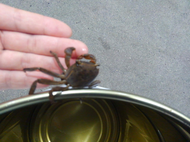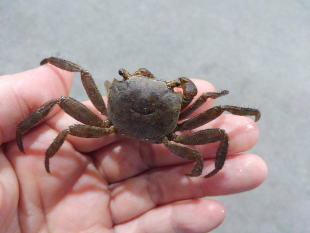 和名:サワガニ 学名:Geothelphusa dehaani 十脚目(エビ目)、サワガニ科。 |